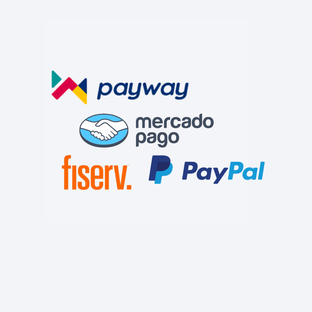 Nos integramos con múltiples pasarelas de pago: Mercado Pago, PayPal, Payway, Fiserv, entre otras.